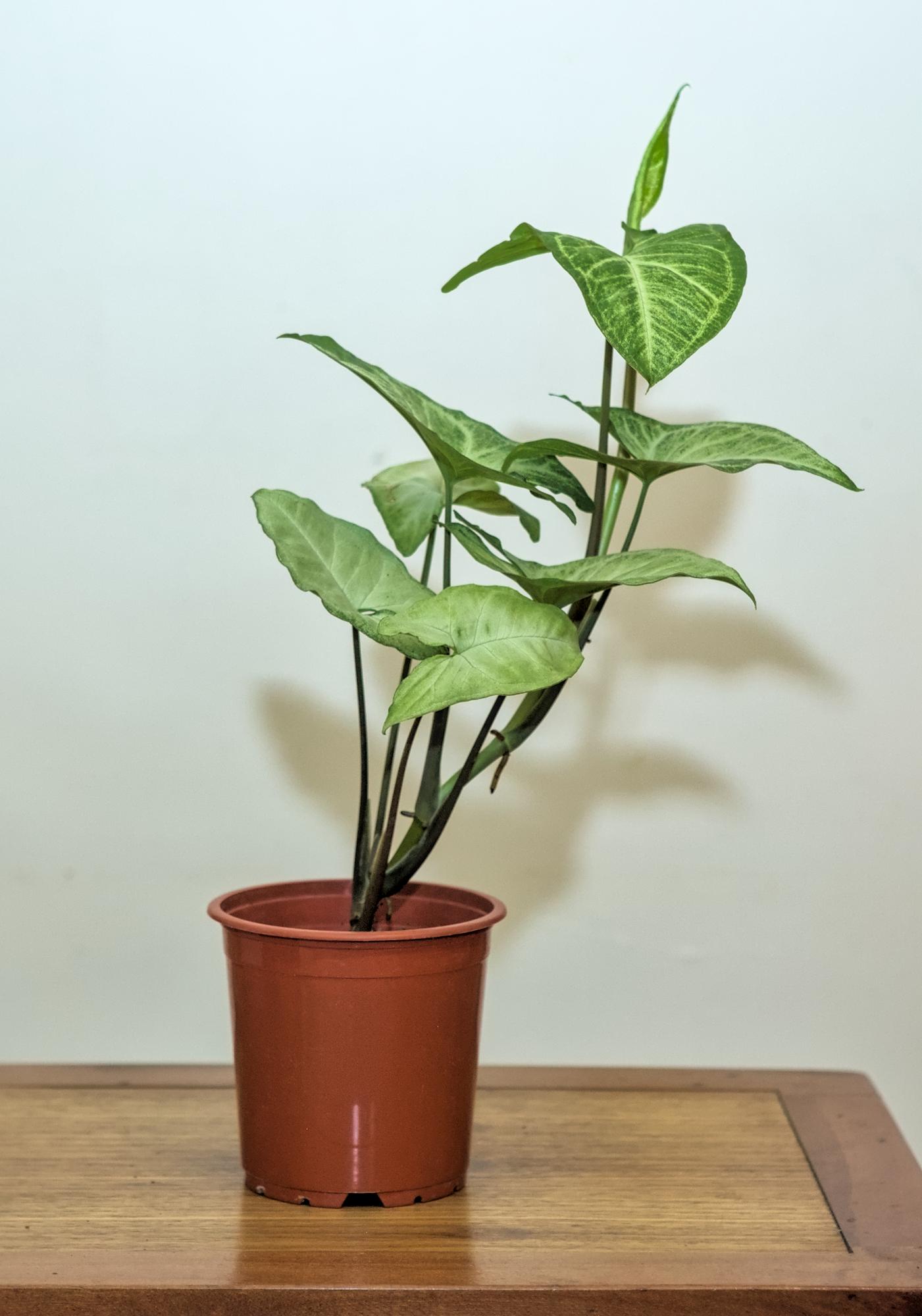 Explora la elegancia plateada del Singonio Silver, una planta interior que agrega un toque de sofisticación y fácil cuidado a tu espacio.